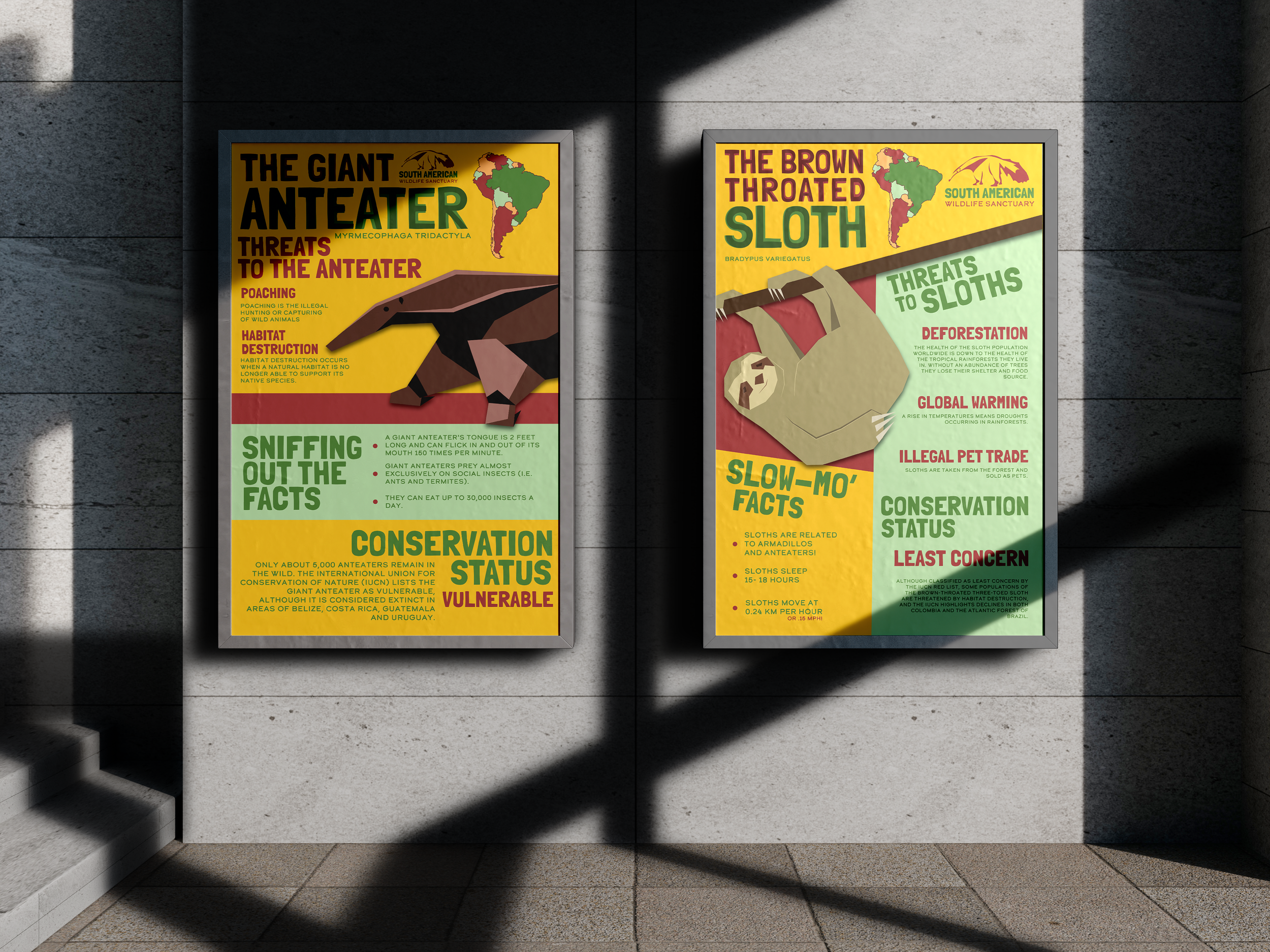 In Fall 2024, during my Graphic Design 6 class, I created a fictional zoo brand for a conservation sanctuary based in South America. I focused on species that are often overlooked but in need of greater conservation efforts, aiming to raise awareness through thoughtful design. The visual identity features earthy, nature-inspired colors and safari-style typography to evoke the region’s environment and wildlife. This project emphasized branding with purpose, combining visual storytelling with environmental advocacy.